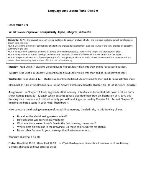 Language Arts Lesson Plans Dec 6